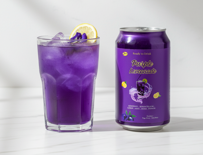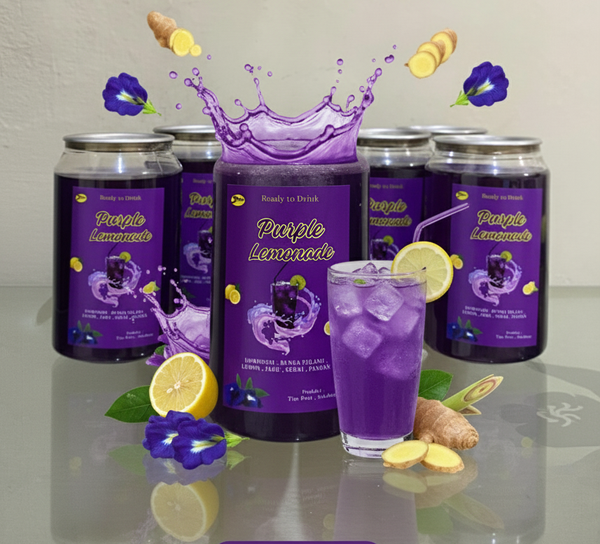Khasiat Purple Lemonade: 1. Detoks tubuh – Lemon membantu melancarkan pencernaan, meningkatkan metabolisme, dan membersihkan racun. 2. Antioksidan tinggi – Warna ungu dari bunga telang atau buah beri kaya akan antosianin yang membantu melawan radikal bebas. 3. Meningkatkan daya tahan tubuh – Vitamin C dari lemon + antioksidan dari bunga/beri mendukung imunitas. 4. Menjaga kesehatan kulit – Kombinasi vitamin C dan antioksidan bantu mencerahkan kulit dan mengurangi tanda penuaan dini. 5. Efek menenangkan – Jika menggunakan bunga telang atau lavender, minuman ini bisa membantu meredakan stres dan menenangkan pikiran. 6. Mendukung kesehatan jantung – Antosianin membantu menjaga elastisitas pembuluh darah dan menurunkan risiko kolesterol jahat. 7. Menghidrasi tubuh – Cocok diminum sebagai penyegar alami, terutama di cuaca panas.